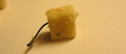 Для рыбалки на голавля очень хорошо подойдёт вид такого сыра, как чеддер и подобные ему виды сыров. Такой сорт нарезают на не очень большие кусочки несколькими миллиметрами, от них вырезать углы и получатся шарики. Нужно правильно одеть такую наживку на остриё у крючка, а для этого необходимо, чтобы жало виднелось из приманки.