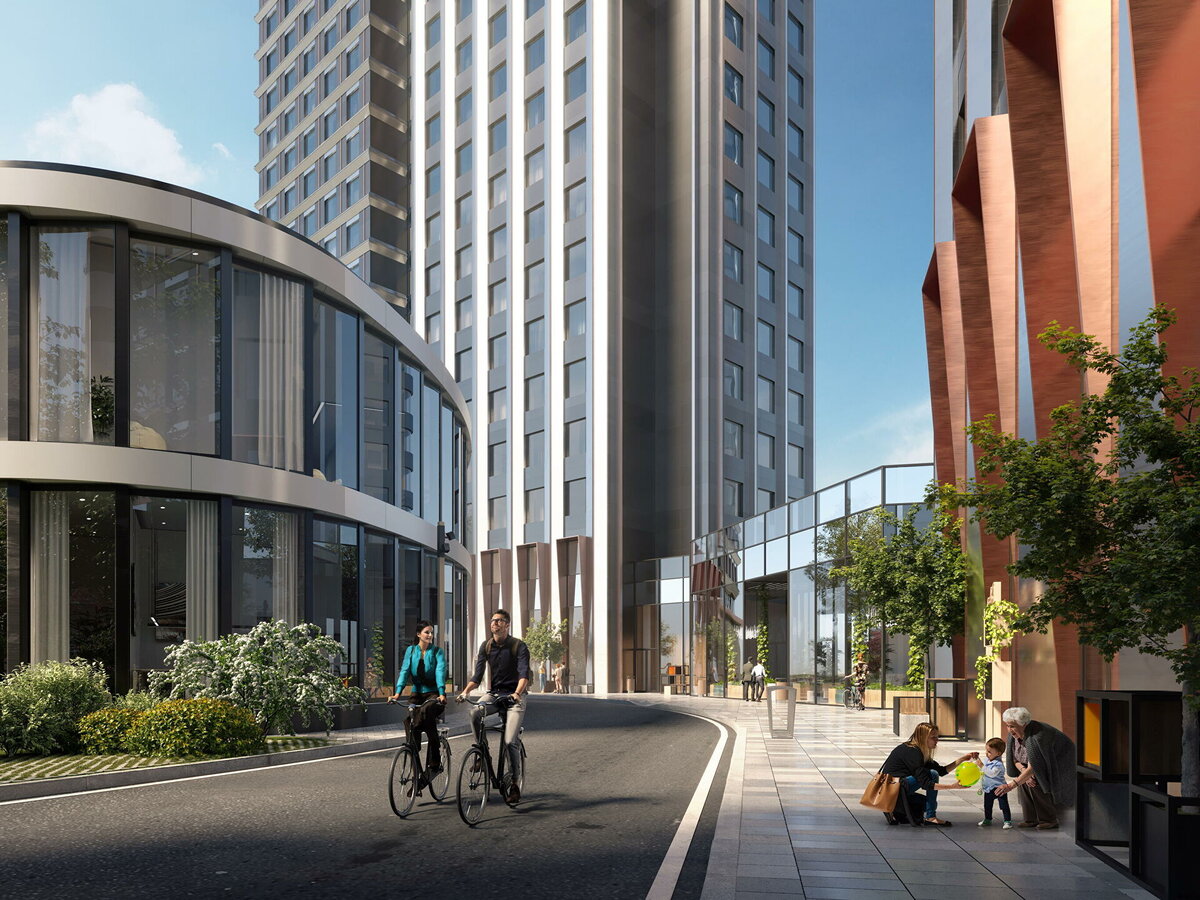 В проект входит три корпуса — 29-ти, 38-ми и 48-этажный. Башни объединены стилобатом с лобби, коворкингом и кофейней. Под территорией размещен паркинг на 427 машиномест с автомойкой.