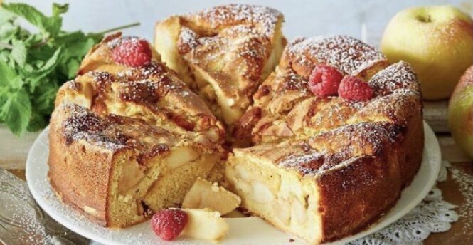 Яблочный пирог или же шарлотка. Рецепт шарлотки очень сильно напоминает рецепт яблочного бисквита. Название шарлотки пришел к нам из романтической истории про повара, который безнадежно влюбился в красивую девушку. Он придумал шарлотку с яблоками и посвятил даме своего сердца этот рецепт. Говорят, что так и появилось название пирога.