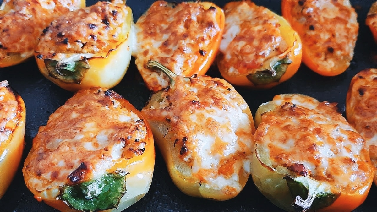 Приготовим мы сегодня фаршированный перец. Не будем его тушить, добавлять в рагу, а запечем в духовке. Быстро и вкусно. Подойдет как самостоятельное блюдо или как плотная закуска.