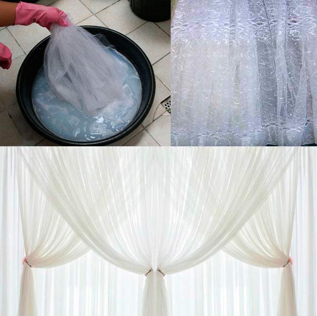 Красивая тюль, безусловно, украшает кухню, придавая ей более уютный вид. Ее используют как отдельно, так и в комплексе со шторами, ламбрекенами, всевозможными видами жалюзи. Однако на кухне, где постоянно происходит приготовление пищи (даже при наличии мощных вытяжек), очень сложно сохранить идеальную чистоту и белизну гардин и тюли.