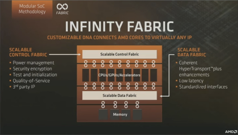 Infinity Fabric - это запатентованная архитектура межсоединений системы, которая облегчает передачу данных и управление по всем связанным компонентам.