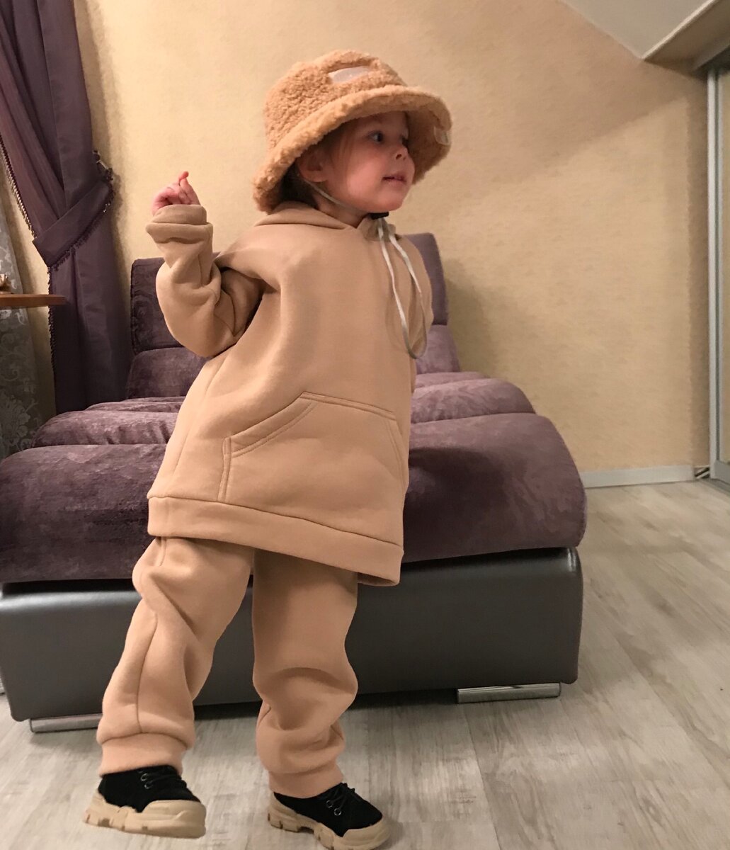 костюмы шикарны в своём качестве! На теплом подкладе, хлопок! Отлично держит форму, худи удлинённое, штаны не узкие!