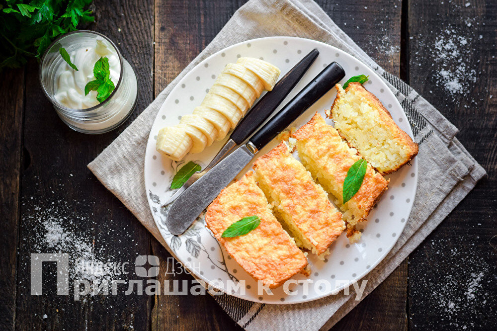 Готовую запеканку немного остужаю, чтобы легче было извлечь из формы. Затем разрезаю на порционные куски и перекладываю на тарелки.