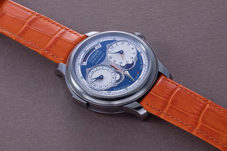 на пятом месте расположились часы от F. P. Journe Astronomic Blue, цена таких часов составляет: 1 811 000 долларов, сделаны они из тантала. F. P. Journe Astronomic Blue является молодой швейцарской компанией, занимает второе место Only Watch по результатам торгов!