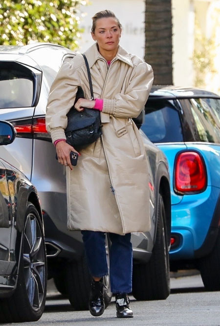 Хотя тренд на кожные вещи уже давно присутствует на подиумах, сейчас мы наблюдаем новую и более неожиданную вариацию той же тенденции. Актриса Джейми Кинг, например, приобрела для своего гардероба оверсайз-пальто молочного оттенка с манжетами и поясом. Для повседневного образа она решила сочетать его с ярким свитером цвета фуксии и укороченными синими джинсами.