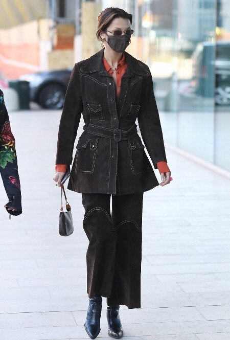 Винтажная эстетика: Белла Хадид в «ковбойском» костюме и морковной рубашке