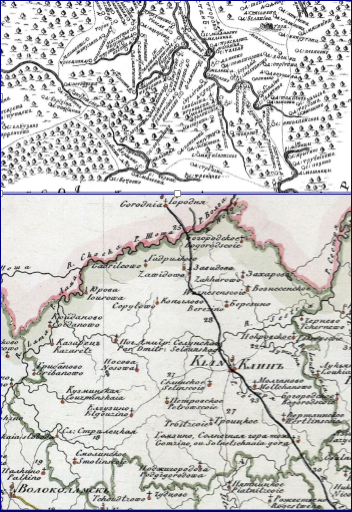 Имена населенные пункты, села, сельца, деревни, полудеревни, выселки, починки, слободы, а так же пустоши и урочища получали, во-первых, от имен лиц, их основавших, во вторых, от предметов, составлявших промысел жителей, в-третьих, от особенного положения на местности и, в-четвертых, от церквей и местных праздников. Конечно, есть названия, выпадающие из этой классификации, часть из них связана с древними языческими, вернее ведическими названиями. Воспользуемся картой Клинского уезда 1766-1770 годов из работы Владимира Кусова «Земли Московской губернии в XVIll веке», составленной в результате обработки межевых паспортов землевладельцев. Села отличаются тем, что в них есть христианские храмы, и многие из них по храмам и назывались: Спас, что в Заулках, Петровское, Троицкое, Воскресенское, что на Шоше, Спасское и другие. Данные названия говорят о временах принятия христианства и его распространении с конца Х века.