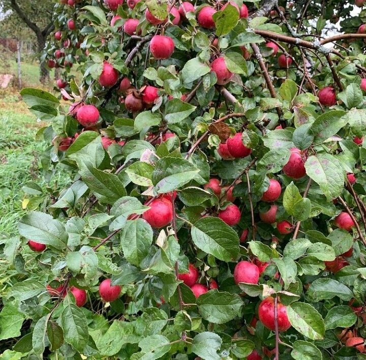 Яблоки малинового цвета имеют небольшой размер, сочные, сладкие с легкой кислинкой. Созревают в конце сентября. Хранятся почти пол года.