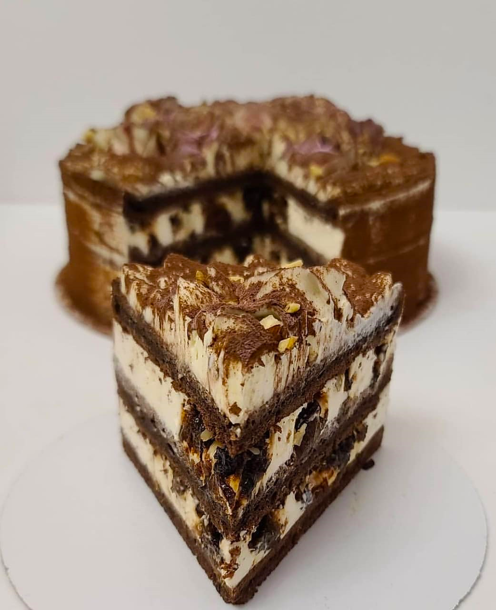 - Сборка: Корж-Крем-Чернослив-Грецкие орехи. Собираем торт в кольце. Убираем в холод для стабилизации ( я убираю на ночь ).