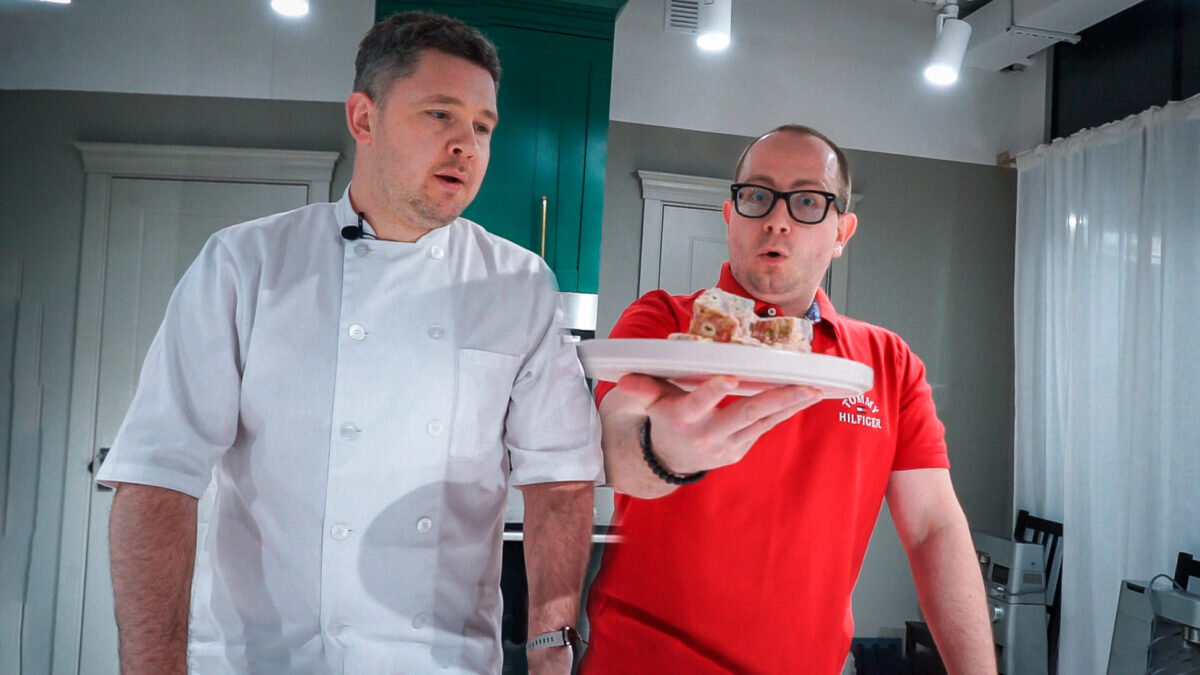Сегодня мы соберём вкуснейший, а главное, красивый и простой десерт, который сможет приготовить каждый. Идея «Сладкого Полена» из розового маршмэллоу была позаимствована у японского блогера и адаптирована под наши вкусы. В этом нам поможет известный в узких кругах практикующий шеф-повар ресторана «Le Gosse» – Антон Немирович. Сейчас всё покажу, это будет бомба!