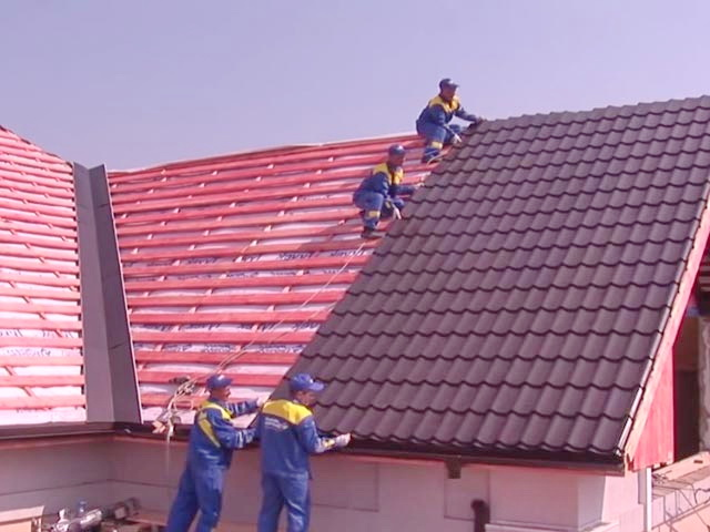 Поверх минеральных плит укладывают гидроизоляционную мембрану или пленку, снизу – пароизоляционную. Вторую проще уложить со стороны чердака. На первом этапе обрабатывают ендову по всей длине, раскатывая материал сверху вниз, потом основную площадь кровли.