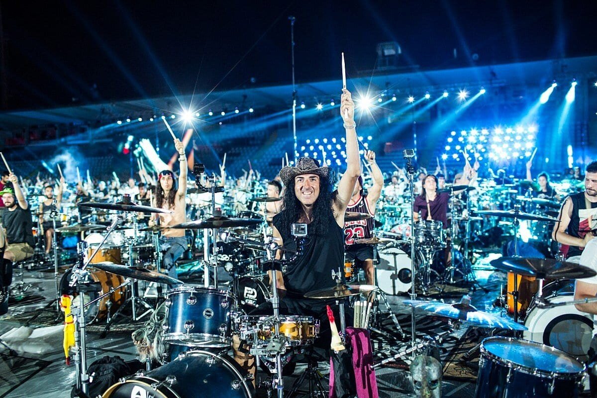 Представьте - огромный стадион, тысячи зрителей, а в самом центре - десятки барабанщиков, десятки гитаристов и сотни вокалистов-любителей, которые все вместе исполняют всем известные рок-хиты.