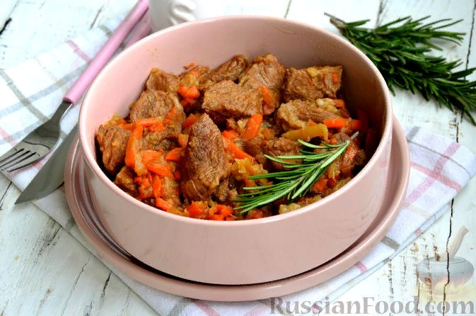 Говядина, тушенная с овощами, получается очень ароматной за счёт пряного розмарина и корня сельдерея. Мясо благодаря длительному тушению становится мягким, а густая, насыщенная подлива отлично сочетается с абсолютно любым гарниром.