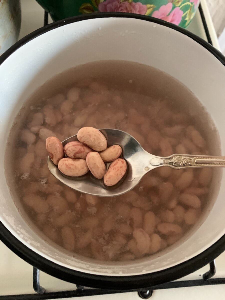 А рецепт следующий - в первую очередь я пол кг. фасоли замочила в тёплой воде примерно на три часа, можно замочить и на большее время. Фасоль за это время разбухает и увеличивается в объёме раза