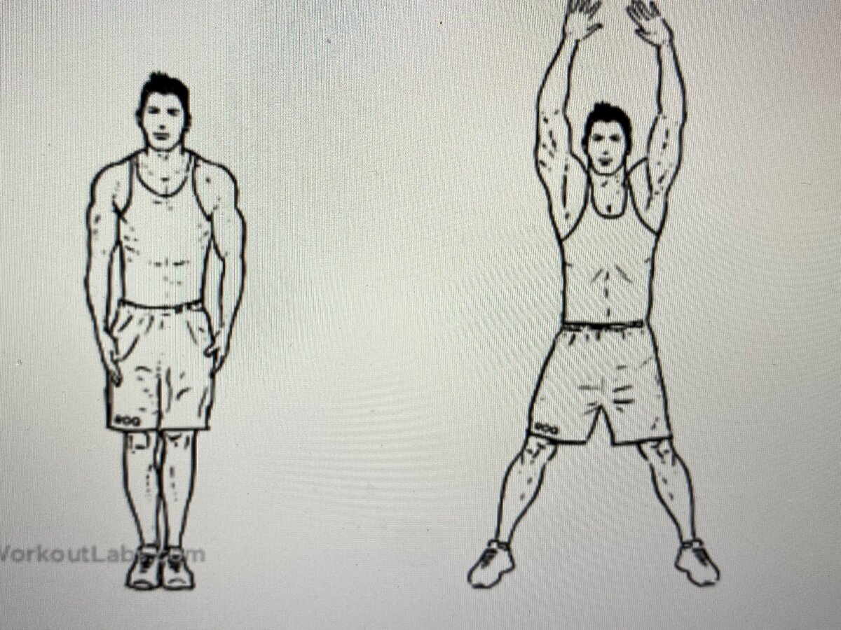1. Солнышко(прыжки с разведением рук и ног).Это упражнение задействует буквально все ваши мышцы , а также поможет подтянуть нижние мышцы живота. Выполнять упражнение нужно быстро, за время его выполнения вы должны выложить на максимум , чтобы был результат. При выполнении , мышцы пресса держим в напряжении, руки не сгибаем и не забываем дышать. Выполняем это упражнение 40 секунд.