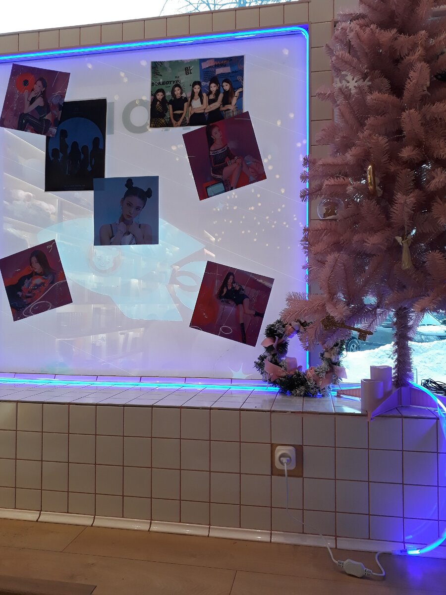 Начну с того, что само помещение небольшое, что немного неудобно, так как посетителей в этом кафе ОЧЕНЬ много. Каждые несколько недель в кафе проходят некие ивенты, посвященные, например, дням рождениям айдолов или другим событиям. Когда я посещала это кафе, то как я поняла, ивент был в честь женских к-поп групп.