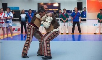 Турниры по борьбе проводились на народных праздниках, свадьбах и гуляниях. Площадку готовили заранее: засыпали песком специально вырытые ямы, поверх песка насыпали отруби, и уже на них стелили покрышку борцовского ковра.