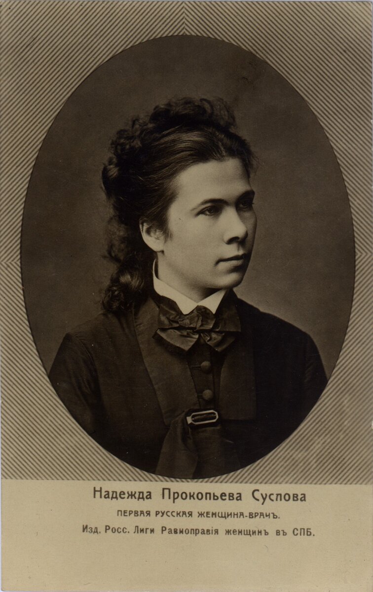 В декабре 1867 года в Швейцарии Надежда Суслова защитила диссертацию «Доклад о физиологии лимфы», выполненную под руководством И. М. Сеченова, став первой в Европе признанной научным сообществом женщиной-врачом и открыв путь к высшему образованию многочисленным последовательницам. Тогда же ей присудили учёную степень и звание доктора медицины, хирургии и акушерства.