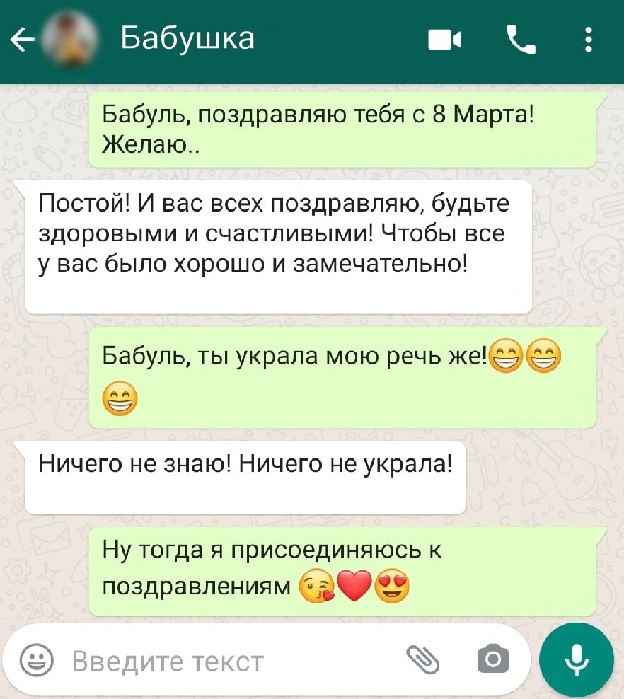Сегодня предлагаю немного отстраниться от реальности и представить, какой была бы переписка внука с бабушкой на 8 Марта! Возможно, они кому-то могут показаться не смешными и не интересными, но уверен, что найдутся и те, кто узнает в этих диалогах себя!