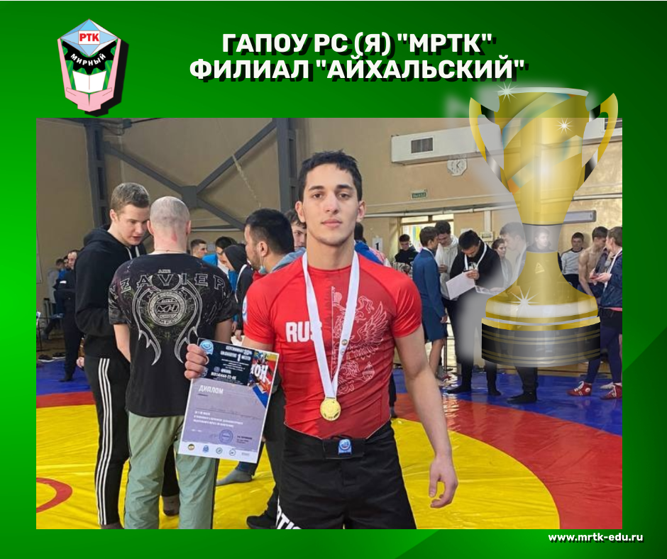 Студент «Айхальского» филиала Мирнинского колледжа стал победителем в первенстве Дальневосточного федерального округа по спортивной борьбе панкратион.