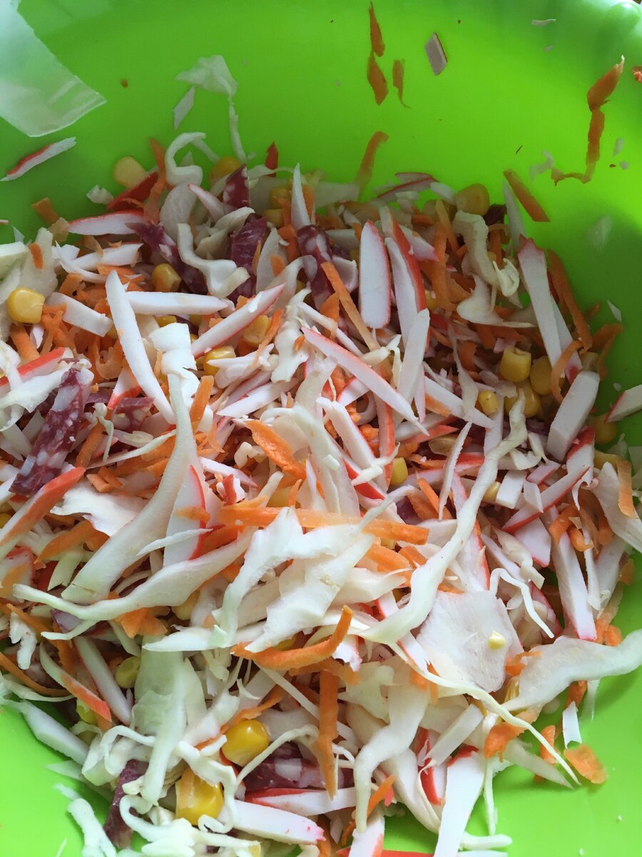 Колбасу нарезать соломкой.