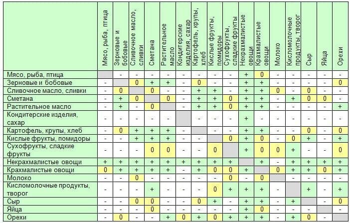 ТАБЛИЦА СОВМЕСТИМОСТИ ПРОДУКТОВ ПИТАНИЯ.