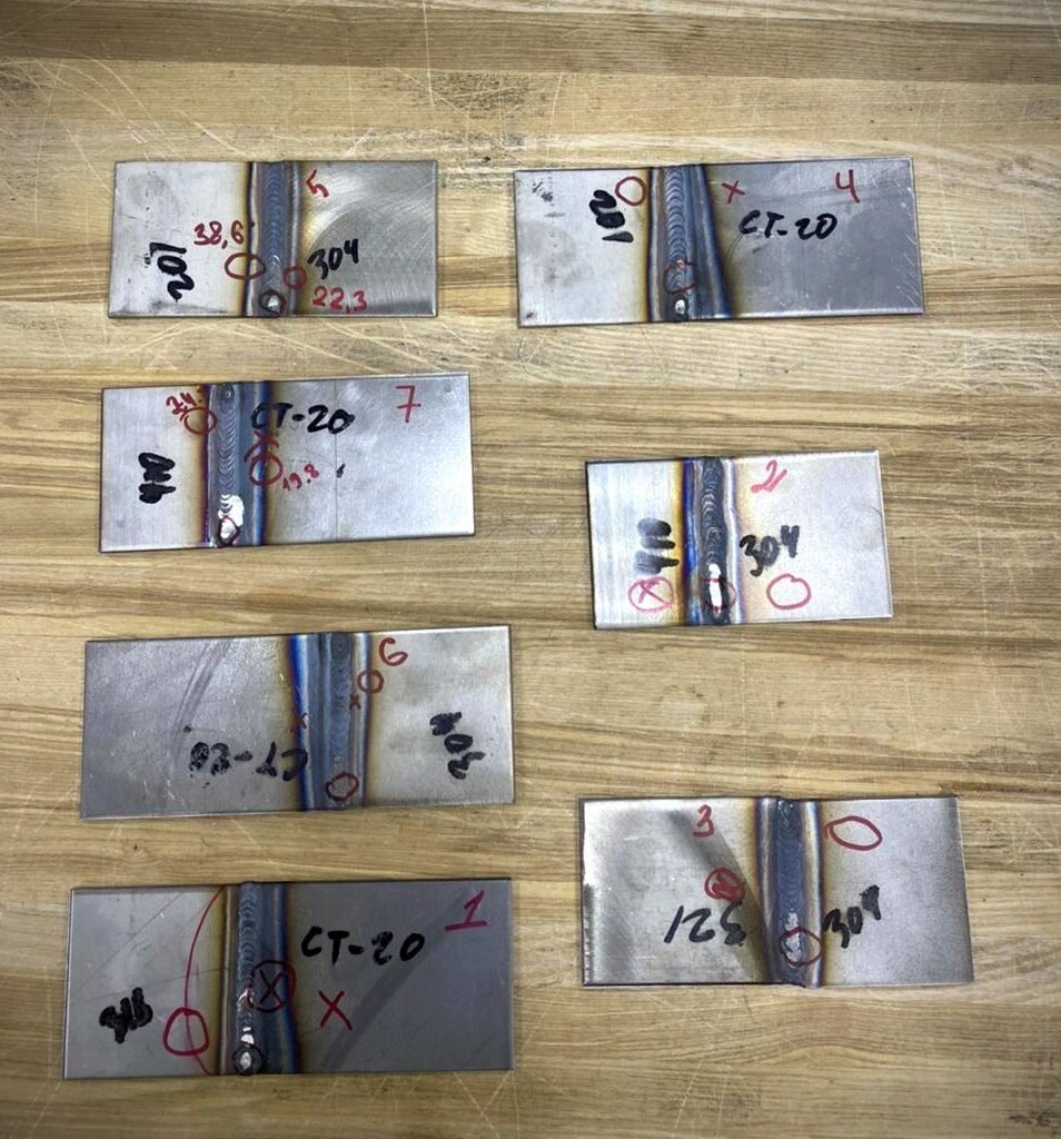 - на самом шве (предварительно он был зашлифован для обеспечения оптимальной шероховатости 1.6 Ra);