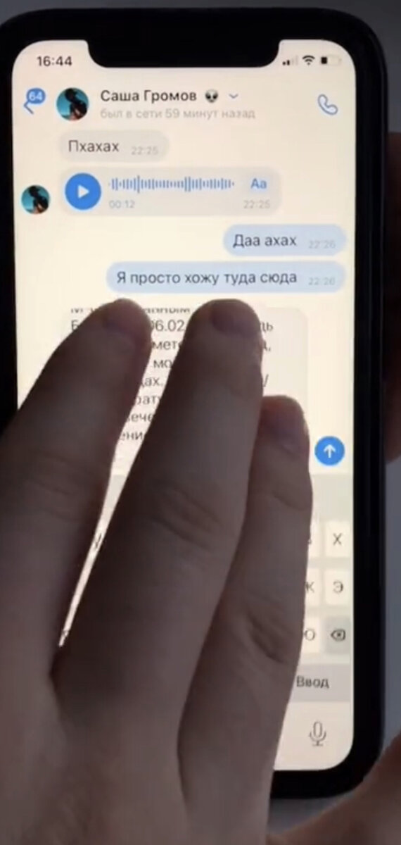 Нужно одновременно тремя пальцами коснуться текста сообщения
