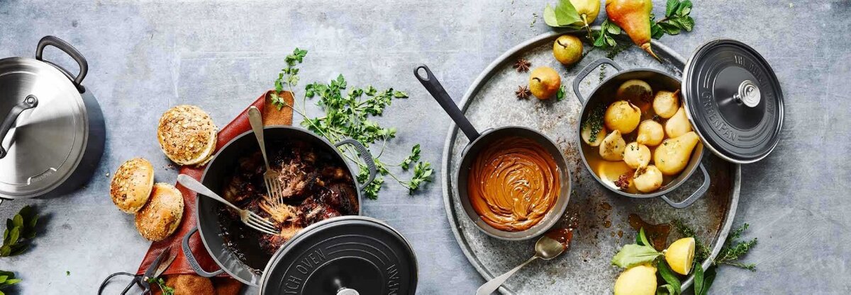 Каждая коллекция посуды выполнена из нержавеющей стали. Такие кастрюли можно использовать для приготовления абсолютно любых блюд — супов, гарниров, молочных каш, кислых фруктовых компотов. Также они подходят для длительного хранения пищи в холодильнике. Посуда сохраняет натуральный вкус пищи, не придает ей металлического привкуса.