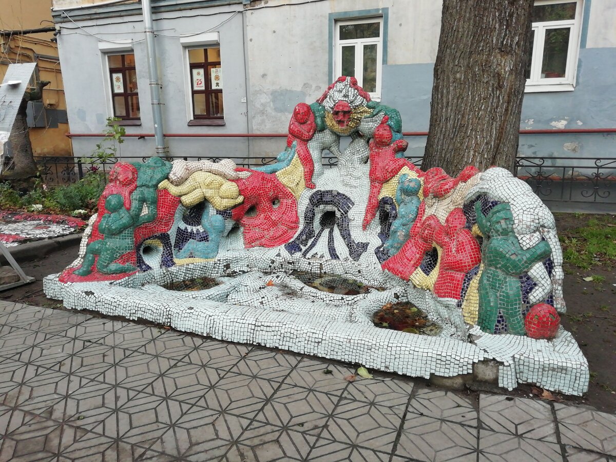 В арке и самом дворе ведутся ремонтные работы, пройдя немного дальше мы увидели вот такие красочные художественные объекты.