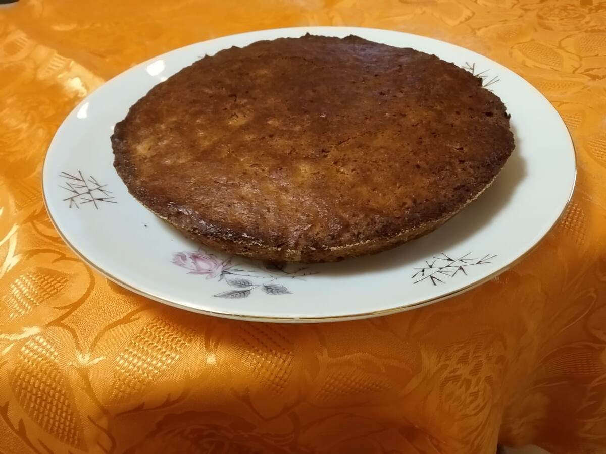- Пирог вынуть из духовки, переложить на тарелку. Дать остыть до комнатной температуры. Сверху можно обсыпать сахарной пудрой (для нарядности).