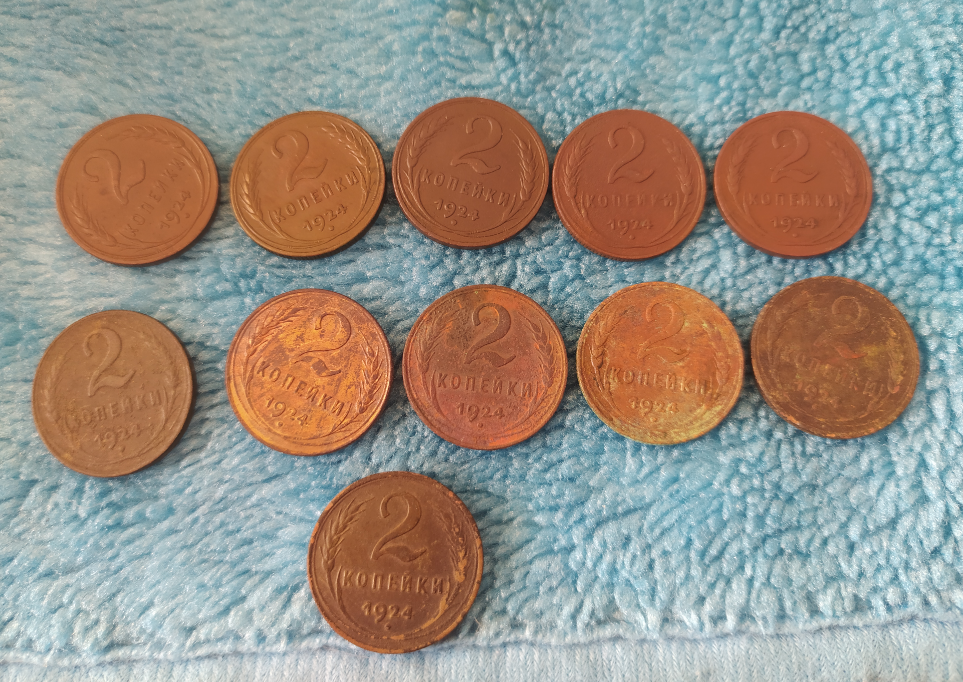 Если заглянуть в популярный справочник по разновидностям советских монет, составленный Андреем Федориным, то можно увидеть, что выделено 7 разновидностей монеты 2 копейки 1924 года.