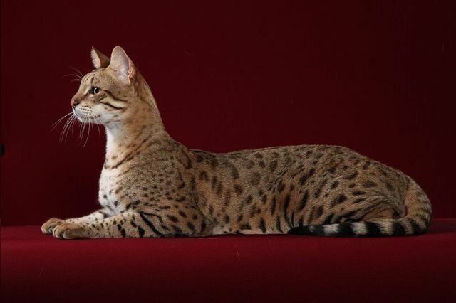 Саванна — гибрид дикой африканской кошки и обычной домашней. Отличительная особенность этой породы — любопытство. Саванны любят везде сопровождать своего хозяина и находиться в центре событий. Эти кошки — отличные компаньоны. Саванны плохо выносят одиночество: они становятся агрессивными и неуправляемыми без постоянного контакта с людьми или другими животными. Саванны не требуют особого ухода: достаточно еженедельно расчесывать шерсть и регулярно чистить уши. Эти кошки любят воду, так что они совсем не против поплавать в теплое время года. Держать саванну в квартире не рекомендуется, это достаточно крупная порода. Кроме того, им необходимо личное пространство, чтобы отдохнуть и спрятаться от посторонних глаз. Саванна — одна из самых дорогих пород, чистокровный котенок может стоить от 500 тысяч до 1,5 миллионов рублей.