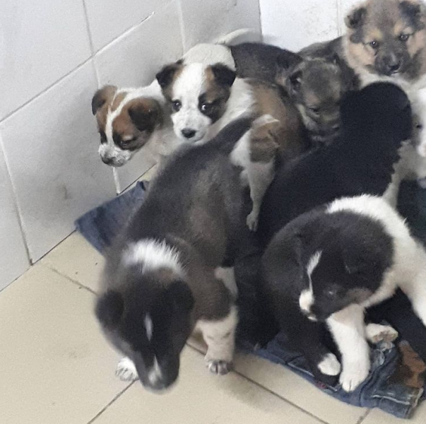 Первый пост посвящен семерым щенкам-подкидышам, которых накануне оставили в коробке у ворот учреждения.