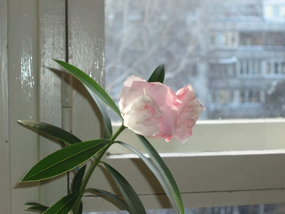 Как греческий меандр –Углы оконной рамы.Наш первый олеандрРасцвёл в мажорной гамме.