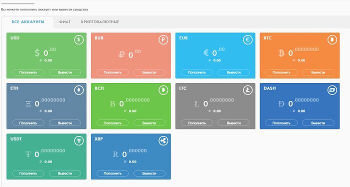 На данный момент Пайер кошелек имеет 10 вида счетов, которые разделяют на фиатные и криптовалютные счета (Скрин 1).