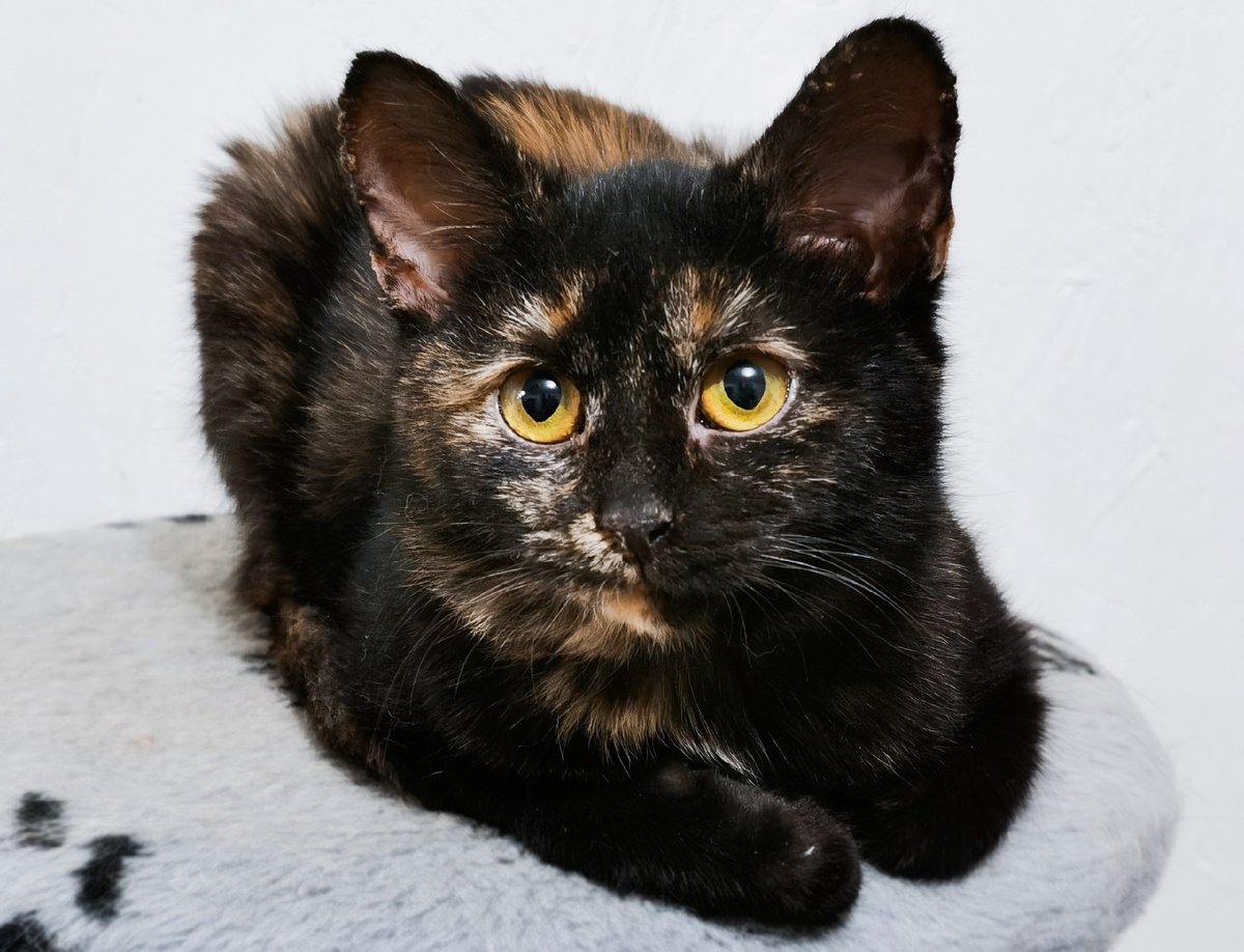 Не знаем, что приключилось в жизни этой славной малышки, но привезли её к нам нахохлившимся комочком с совиными глазами, полными страха и недоверия. Чуть позже обнаружили у Мотеньки застарелый перелом лапки, который уже давно сросся, немного искривив лапку. Страшно представить, сколько горя уже вытерпел этот бедный ребёнок. Подвергать крошку новым страданиям мы не стали, оставив лапку в