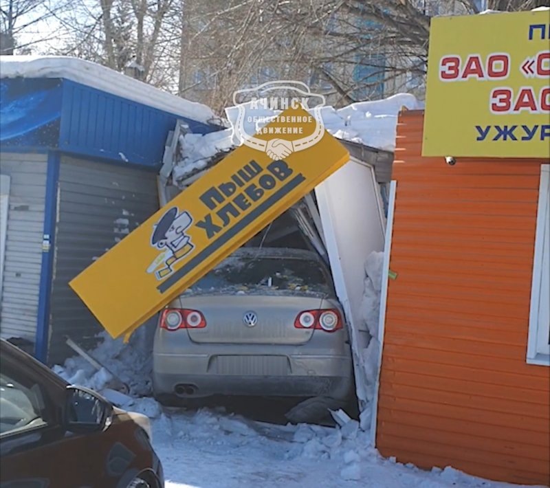 В Ачинске сегодня, 9 марта, произошло неординарное ДТП: водитель иномарки влетел в помещение хлебного павильона. Видео и фотографии с места происшествия опубликованы в соцсетях. Судя по кадрам фото, дорожный инцидент произошёл на пересечении улиц Ленина и Зверева. По предварительной информации, водитель во время движения не смог проехать перекрёсток, результат - его автомобиль влетел в хлебный киоск, на вывеске которого значится "ПышХлебов". С места аварии водитель скрылся, однако спустя некоторое время вышеуказанная иномарка была обнаружена во дворе одного из домов города.