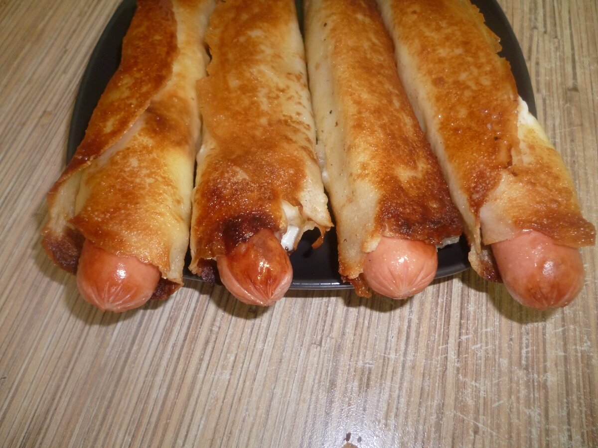 Пока такое изобилие, предлагаю попробовать вкуснейшую вещь - Блин-Доги. Блюдо, конечно, не самое полезное, но какое вкусное!!!