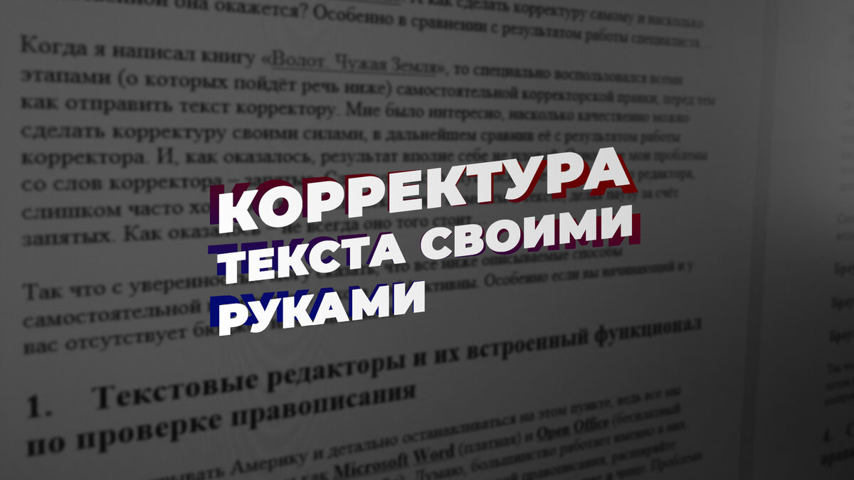 Когда я написал книгу «Волот. Чужая Земля », то специально воспользовался всеми этапами (о которых пойдёт речь ниже) самостоятельной корректорской правки, перед тем как отправить текст корректору. Мне было интересно, насколько качественно можно сделать корректуру своими силами, в дальнейшем сравнив её с результатом работы корректора. И, как оказалось, результат вполне себе не плохой. Основные мои проблемы со слов корректора – запятые. Слишком часто слушался советов текстового редактора, слишком часто хотелось выделить некоторые моменты в тексте, делая паузу за счёт запятых. Как оказалось – не всегда оно того стоит…