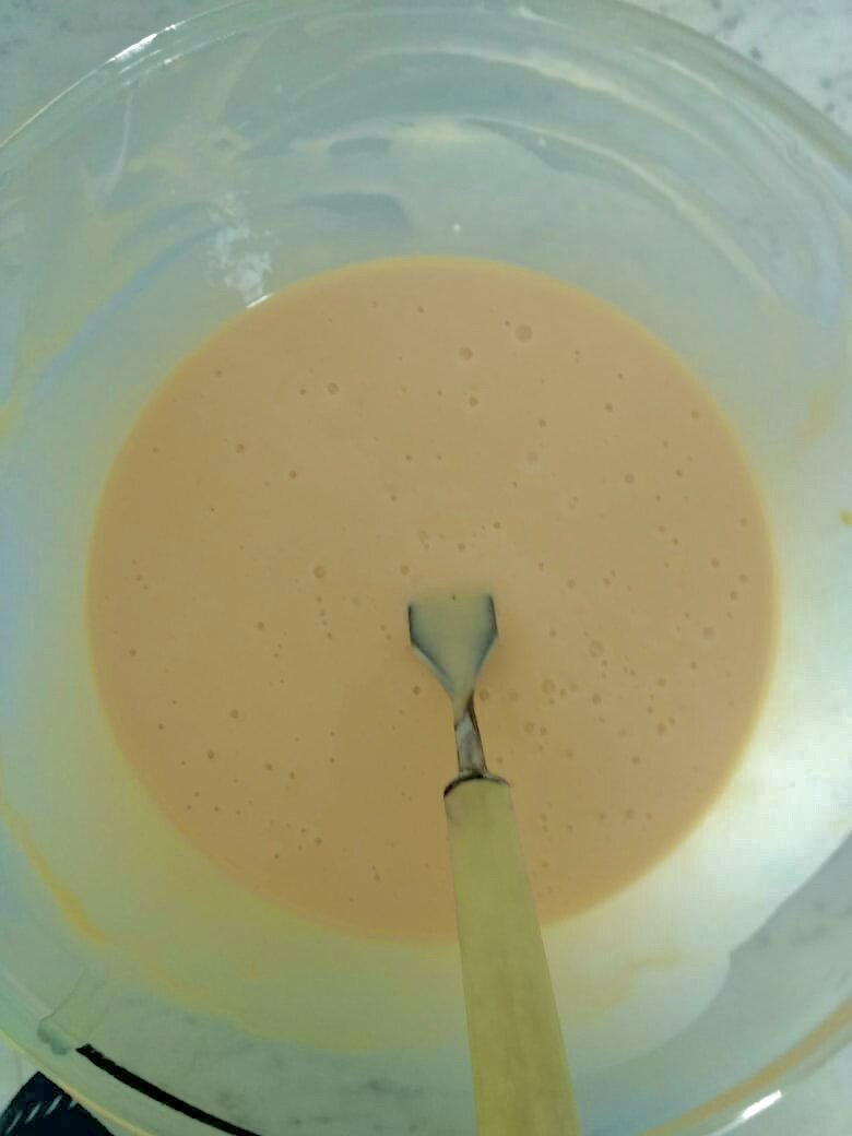 Для начала отправляем вариться яйца, трех штук будет достаточно. Тем временем, готовим тесто. Взбиваем яйца( 2-3 штуки), добавляем соль, около половинки чайной ложки. Во взбитые яйца добавляем 200 граммов сметаны( у меня 20-ти процентной жирности), пару столовых ложек майонеза. Хорошенечко перемешиваем и добавляем муку - 7 столовых ложек. Муку обязательно просеиваем и добавляем разрыхлитель. Я использую погашенную соду( примерно 1/3 чайной ложки). Хорошенечко перемешиваем тесто. Консистенция будет похожа на жидкую сметану.