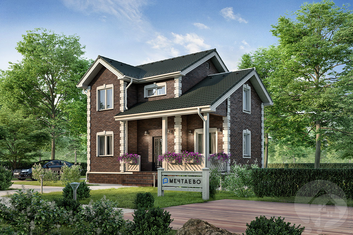 Оштукатуренный фасад с декоративной плиткой будет радовать глаз приглушенными тонами, а камин сделает каждый вечер в кругу небольшой семьи теплым и незабываемым.
