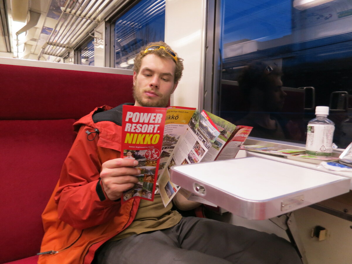 Сидя в электричке, мы еще не подозревали, что очень скоро нас ждет сюрприз от японской природы. Оказывается в стране восходящего солнца темнеет очень рано, в середине апреля сумерки приходят в районе 17 часов и совсем скоро за окном стало не видно ни зги.