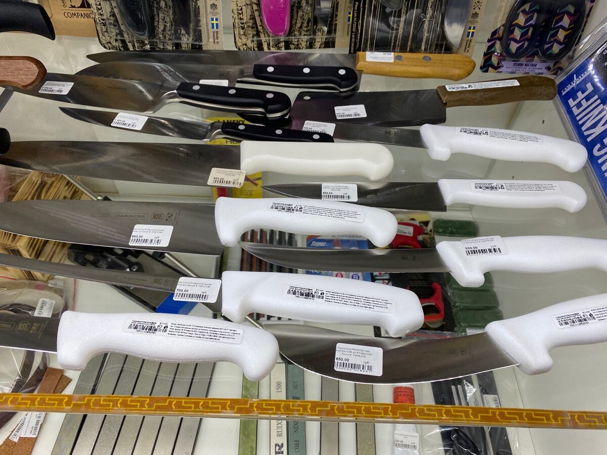 И тут обратил внимание на целую полку, забитую кухонными ножами...