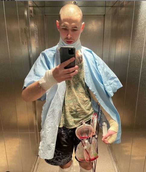 "Случился тот момент жизненный, когда я избавляюсь потихоньку от рук. Прошла вторая операция на трицепс", – сказал Терёшин. Молодой человек признался, что "сделал руки по глупости", и сегодня жалеет о своём решении улучшить внешний вид с помощью сомнительных инъекций. "У меня проблемы с руками, мне 24 года, мой иммунитет борется с воспалением. Что будет дальше, я не знаю, поэтому и взялся за операцию, чтобы избавиться от этого кошмара", – сообщил Руки-Базуки.