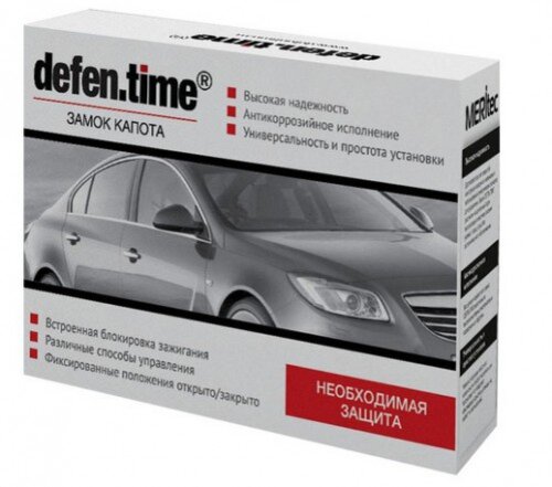 Defen Time V5 Doublelock не позволяет загнуть капот при попытке угона, максимально защищая его от постороннего вторжения. Замок имеет запатентованную конструкцию с двойным запорным механизмом «сфера». Запорный штырь изготовлен из нержавеющей стали с защитным покрытием, а электромеханический редуктор имеет повышенное тягловое усилие.
