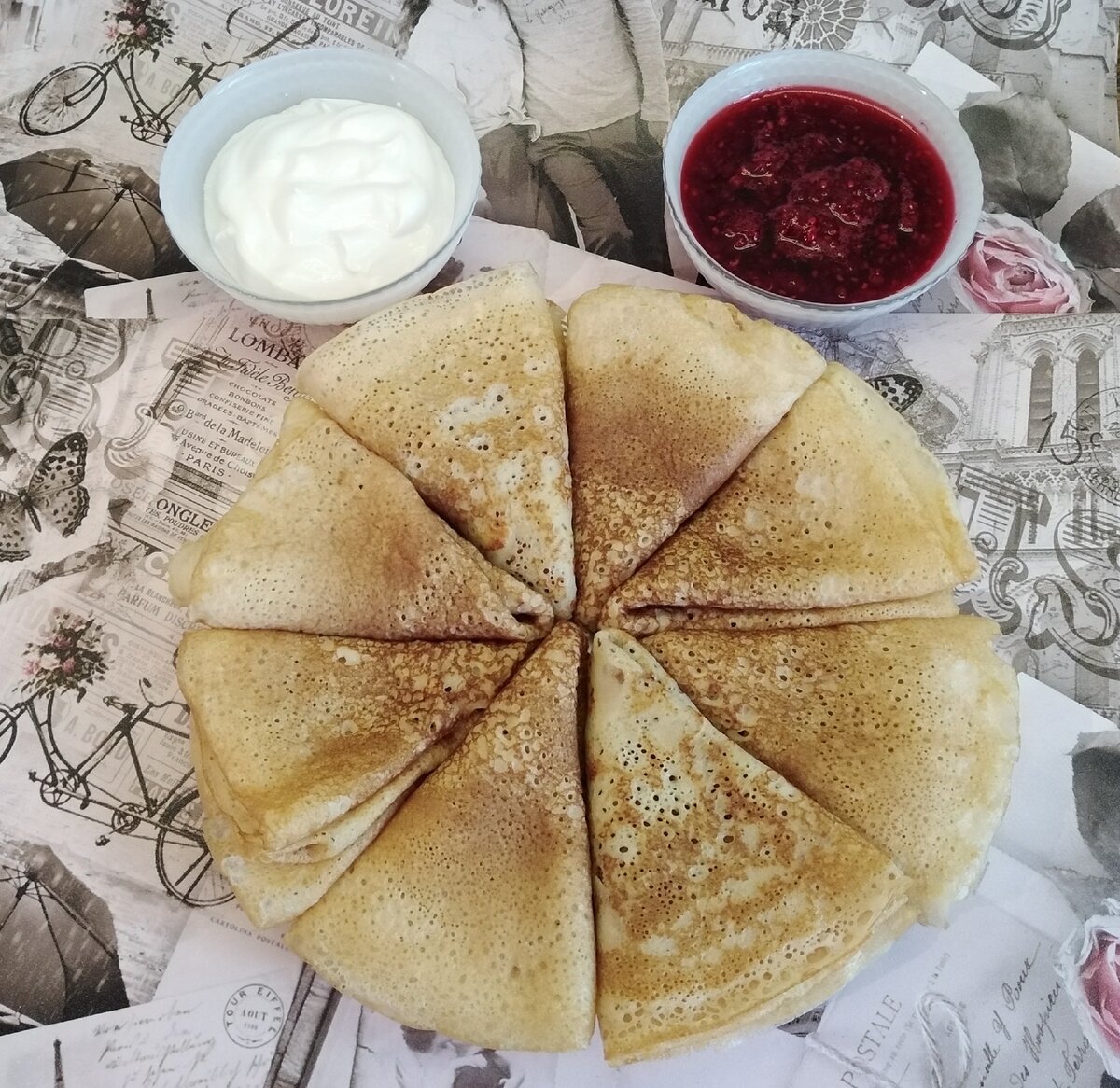 Вот и Масленица пришла! В каждой семье есть множество рецептов разнообразных блинов, блинчиков и оладушек. Наша семья не является исключением и у каждого рецепта есть свои поклонники. Сегодня я представляю вашему внимаю вкусные заварные блины на кефире. Особенностью этих блинов является их воздушность и множество пузырьков, поэтому часто такие блины еще называют «Вологодское кружево». В рецепте мы будем использовать только что закипевшую воду. Если вы любите сладкие блины, то можете увеличить количество сахара до 3 столовых ложек. Если же вы планируете делать блины с не сладкой начинкой, то можете уменьшить количество сахара до 1 столовой ложки. Для размешивания теста я буду использовать венчик. Обязательно просейте муку, чтобы обогатить тесто кислородом. Если вы будете, как и я, выпекать блины на сковороде с антипригарным покрытием, то смазывать сковороду надо будет только перед выпечкой первого блина. Если же у вас сковорода без антипригарного покрытия, то советую вам смазывать сково