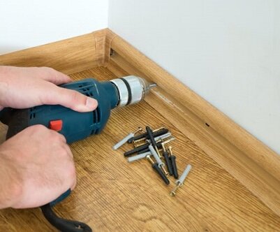 Заранее выбирается, каким образом будет производиться крепление плинтуса к стене: при помощи клея, шурупов, саморезов или дюбелей.