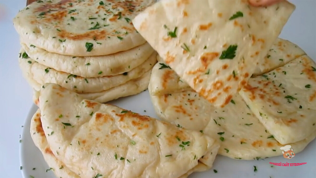 - Смешайте рубленную петрушку с оливковым маслом и смазывайте готовые лепешки, складывая одна на одну.